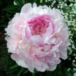 Пион Нэнси Нора. Цветки густомахровые, розовидные, диаметром 17-18 см, нежно-розовой окраски с кремовым оттенком. Аромат сильный (смесь розы и герани).