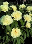 Гибрид. Цветок большой, диаметром 18-20 см, махровый, кремово-жёлтый, светящийся. Лепестки красиво сложенные. В центре жёлтые тычинки. Листья тёмно-зелёные. Стебли прочные, прямые. Куст высотой 90 см, быстро разрастается. Срок цветение средне-ранний.