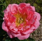 Coral Sunset (Корал Сансет) S.Wissing, 1961г. США. Гибрид. Полумахровый 5-7-рядный. Цветок крупный Ф=20см. и более. При роспуске розово-коралловый, основания более светлее. Затем персиково-розовый, позднее все стадии до зеленовато-кремового, топлёного молока. По тону считается лучшим в серии коралловых. Н=90см. Очень ранний. Золотая медаль США в 2003г. Орден за ландшафтные заслуги в 2009г.