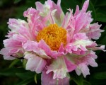 Пион Pink Spritzer (Пинк Спритцер) Krekler / R.Klehm, 2001г. США. Цветок полу-махровый, кактусовидный. Вперемежку розовые и светло-зелёные лепестки. Н=70см. Среднего срока цветения.