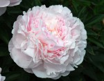 Пион Нэнси Нора. Цветки густомахровые, розовидные, диаметром 17-18 см, нежно-розовой окраски с кремовым оттенком. Аромат сильный (смесь розы и герани).