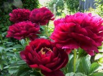 Махровый розовидный. Цветок диаметром 20 см!!! тёмно-красный, бархатистый, ароматный. Лепестки крупные, вогнутые, очень плотные. Есть тычинки. Цветение в средние сроки, длительное, за счёт боковых бутонов. Куст высотой 90 см. Стебли прямые, крепкие, сильно облиственные доверху. Листва средне-зелёная, с широкими листовыми пластинами. Награждён золотой медалью в 1997 году. Один из лучших ландшафтных пионов. Среди гибридов – один из самых поздних.